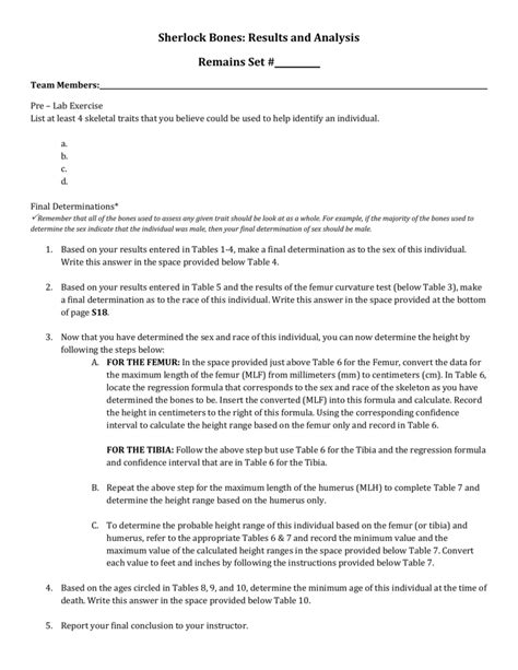 Read SHERLOCK BONES LAB ANSWERS PDF Library Genesis